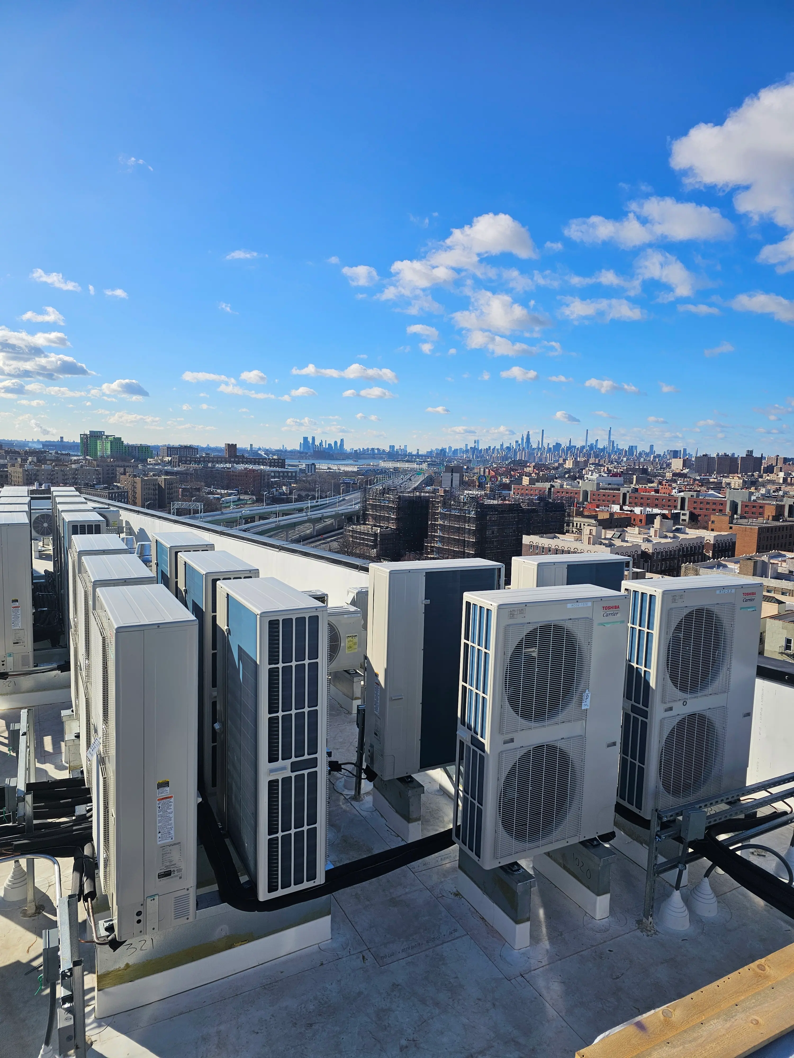Multi-zone VRF rooftop system installed for a residential complex in the Bronx.